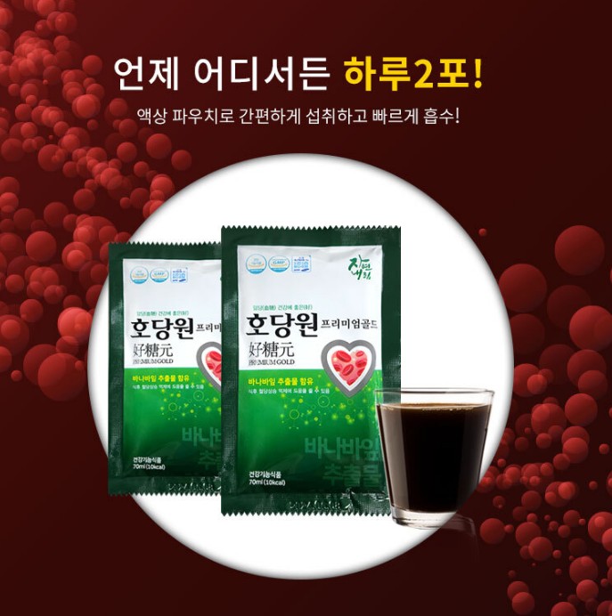 당뇨는 현재 시대에 무서운 질병으로 많이 알려져 있는데요. 포도당이 세포에 흡수되지 못하고 혈액 내 잔존하여 혈당이 높은 상태로 남아있게 되어 특별한 증상 없이 당뇨가 진행된다고 합니다. 당뇨는 혈당을 잡아주면 크게 개선될 수 있는데요. 호당원 프리미엄 골드는 그 혈당을 잡아주는 데 큰 도움을 준다고 합니다.